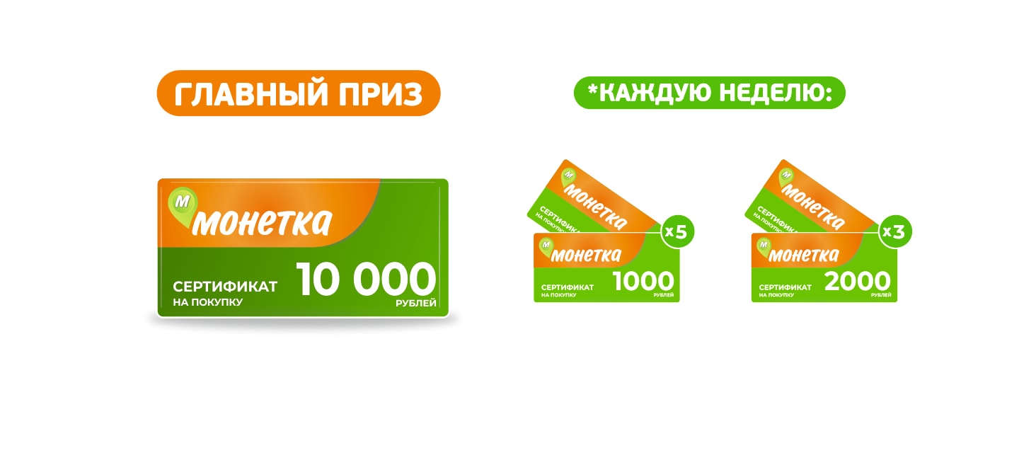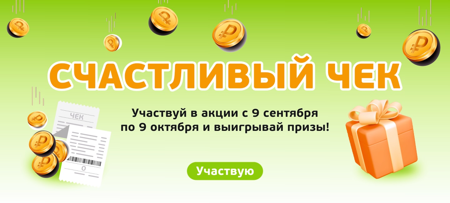 В акции участвуют чеки за покупки из магазина «Монетка» (адреса магазинов, участвующих в акции, указаны в Приложение №1 Правил акции) номиналом не менее 400 рублей, совершенные в период с 09.09.2024 г. по 09.10.2024 г.